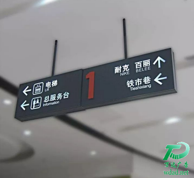 標(biāo)識(shí)標(biāo)牌制作重量及其它一些特殊要求采用合適吊裝材料。吊牌燈箱通常就是運(yùn)用這種安裝方法。