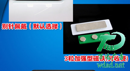 佩戴方式分三粒加強型磁鐵,每顆磁力高達2400高斯,淘汰易生銹且沉重的鐵質(zhì)磁鐵,整體重量約21g;別針佩戴,PVC材質(zhì)-高彈別針,整體胸牌重量約10.5克。